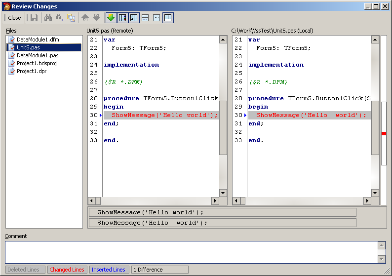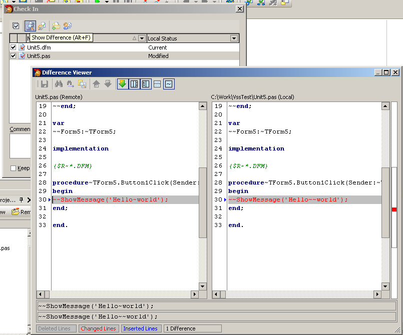 between file by clicking the Show Diff button.
