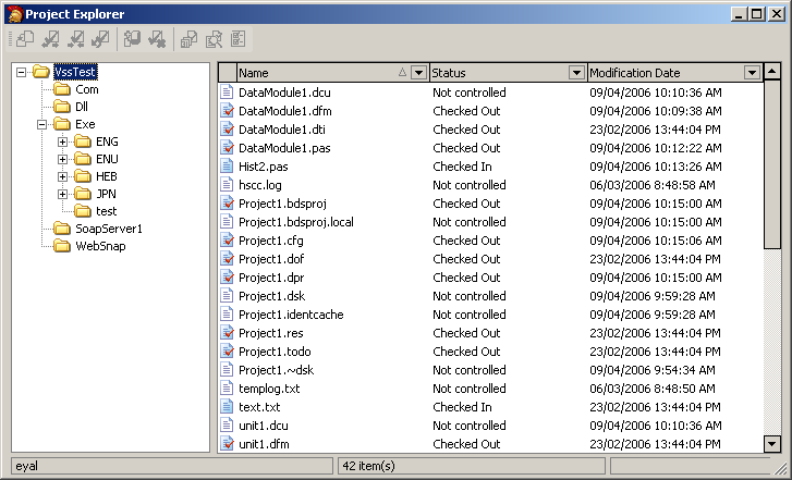The SourceConneXion project explorer is